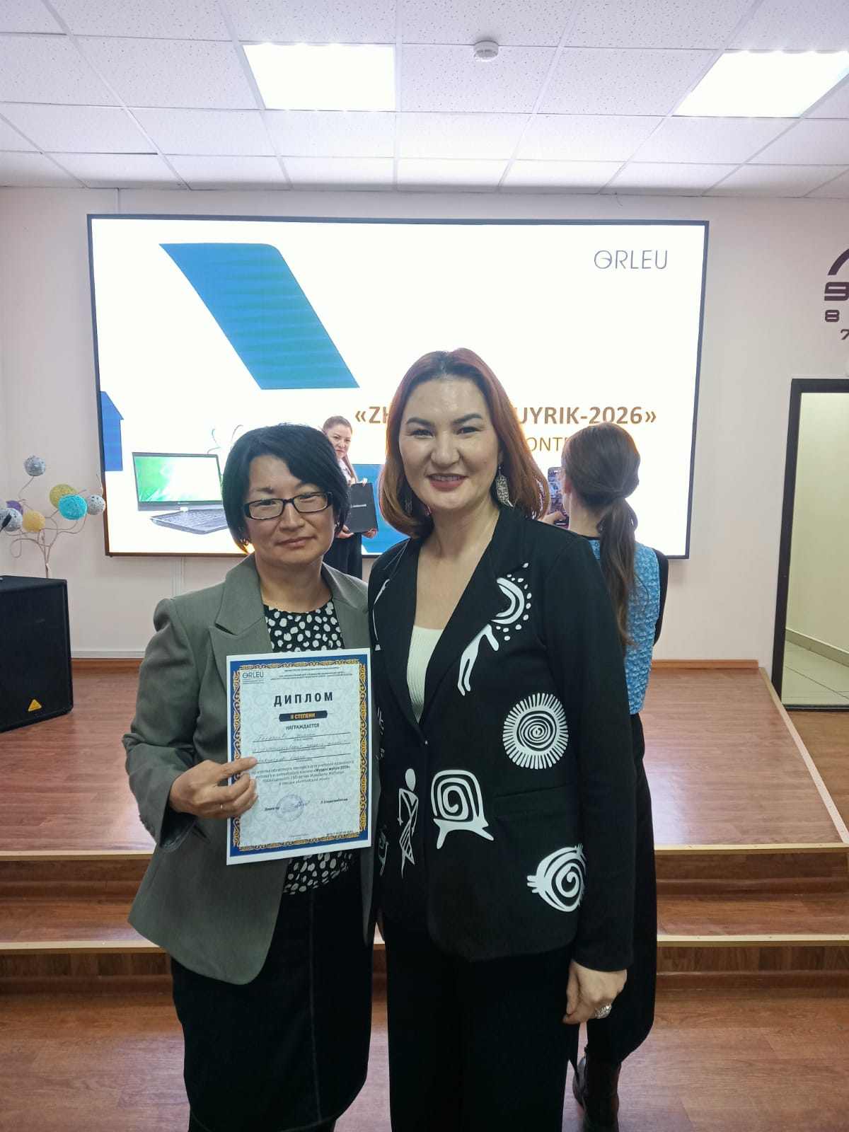 По итогам областного конкурса для учителей казахского, русского и английского языков "Жүзден жүйрік - 2026", посвящённого 180-летию Жамбыла Жабаева в секции "Английский язык" заняла почётное 2 место директор КГУ "Железенская общеобразовательная школа" Колмакова Шолпан Токтаровна. Поздравляем!!!